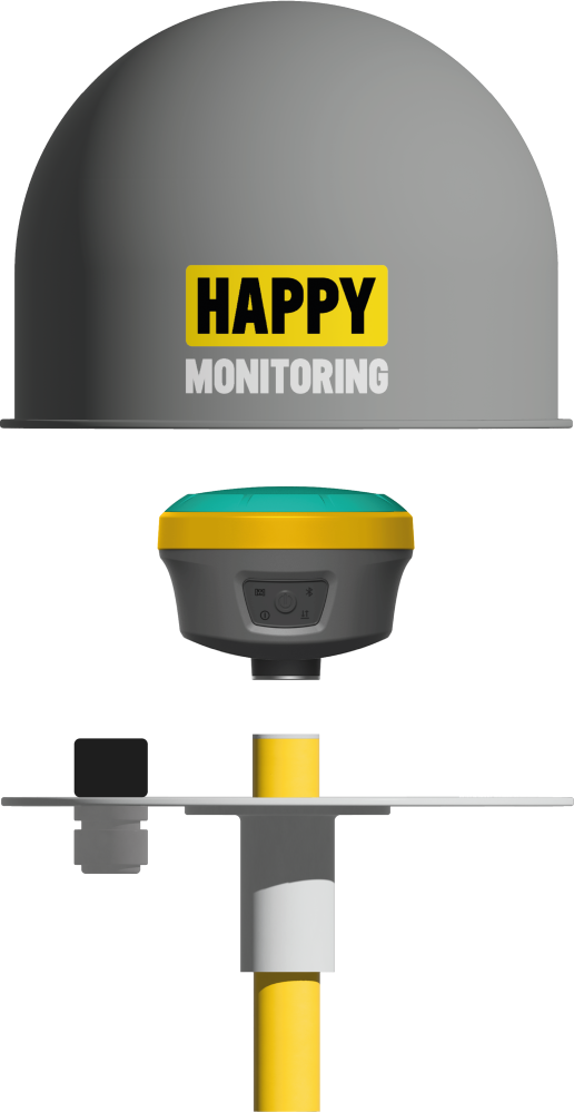They are equipped with multi-frequency receivers with integrated GPRS and can use corrections from HAPPY BASE for maximum accuracy. Thanks to the new multipath filter, the sensor achieves a more stable and reliable signal, even in urban areas with tall buildings. An integrated IMU allows precise monitoring of tilt and inclination, making them perfectly suited for applications such as railway tracks.